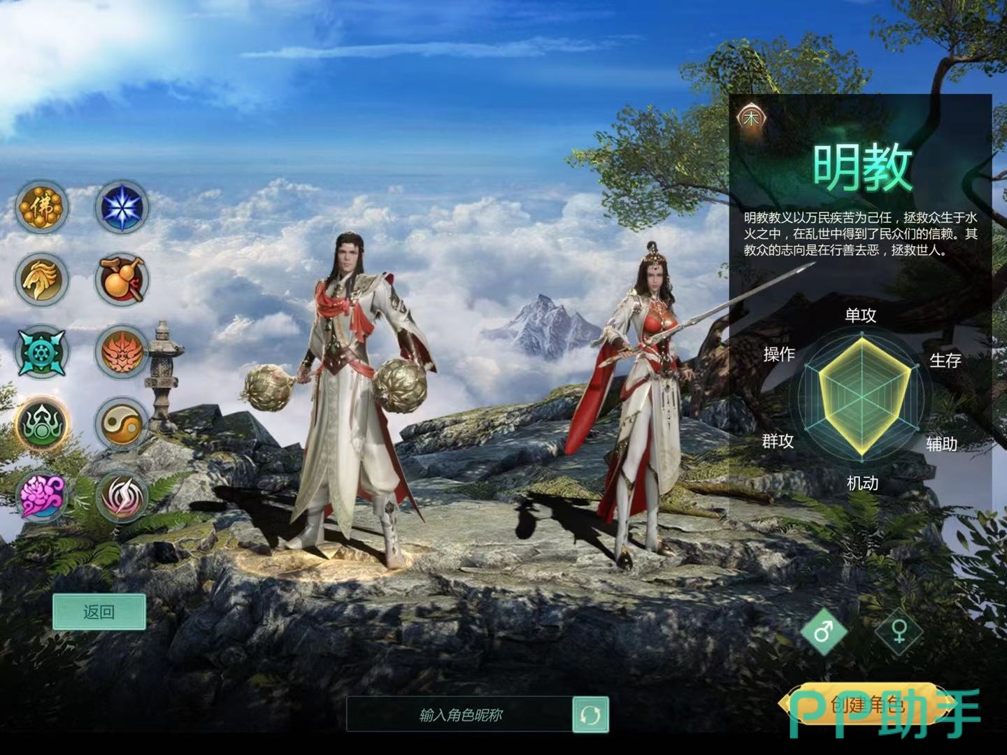 明教有着锤明和剑明之分,在倾向性上锤明更适合承担突进战士的角色,有着较强的近战能力,一套技能的爆发输出非常高,对火系远程流派有着较好的克制效果,而剑明则以远攻为主,伤害高的同时操作起来也较为简单。