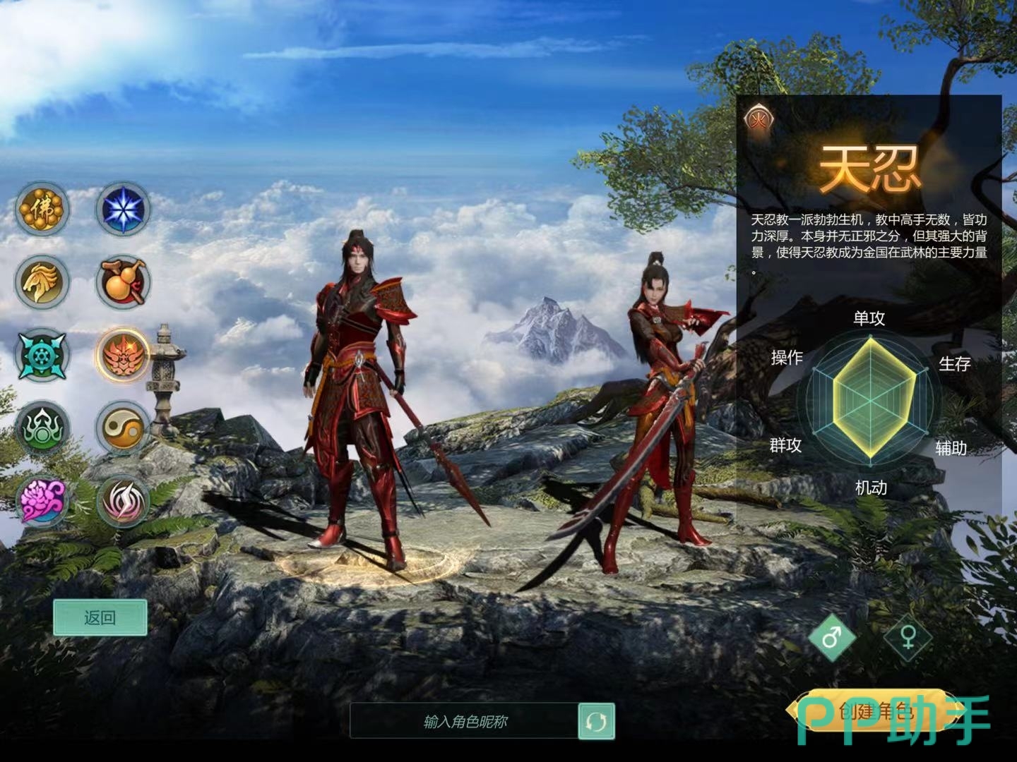 天忍门下分为刀天忍和战天忍,两者在定位上都是不错的输出手,只不过刀天忍可在技能攻击到敌方后对其施加灼烧效果,而战天忍则可通过其不俗的吸血能力,在近战中拥有较为不错的生存和单挑能力。