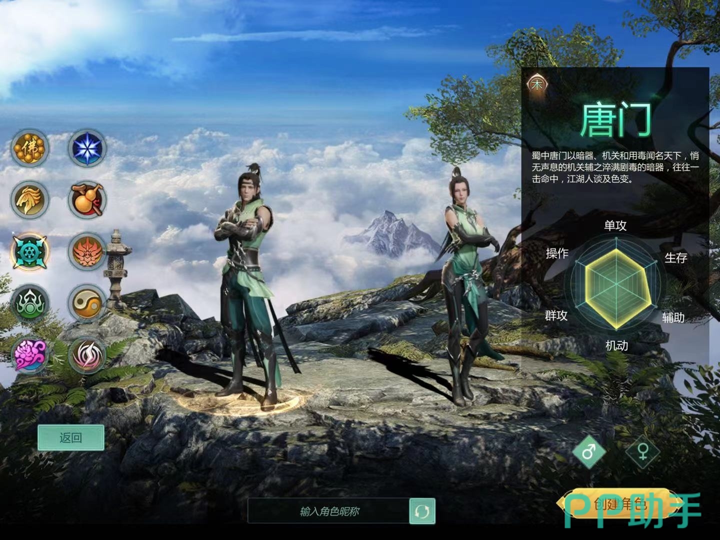与其他武侠类游戏差不多,唐门在这款作品里也是以毒和陷阱著称,并分为袖唐和陷唐。袖唐在定位上更偏向刺客,在技能上有着多位移和高攻击的特性。陷唐则更偏向战场,可布置很多陷阱,为敌人施加众多的debuff属性,属于群战必备流派之一。