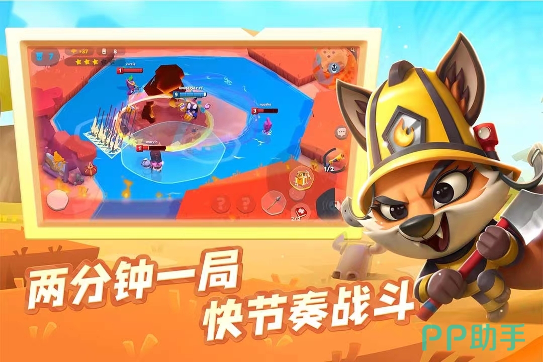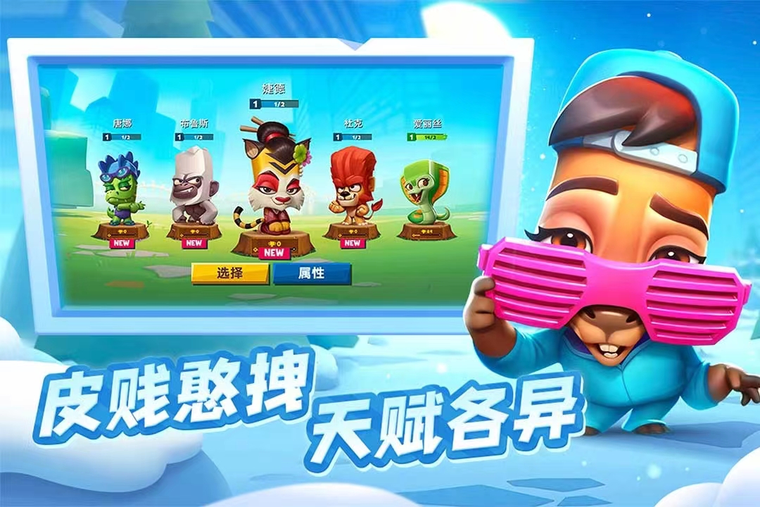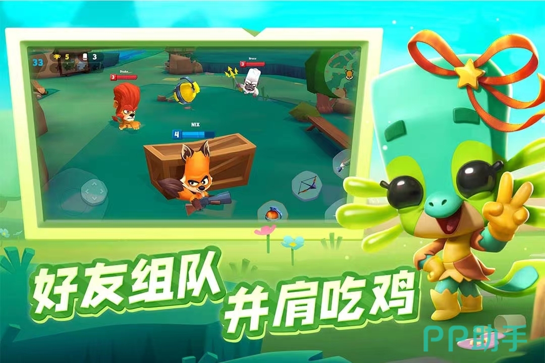这款游戏虽然是以一种非常萌趣可爱的画风出现在玩家们眼前的,但是它却是一款非常典型并且好玩刺激的射击类大逃杀游戏,在这里玩家不要从33名职业角色当中选择一名角色进行扮演,然后操控该领角色使用他的技能在大逃杀战场当中生存下去同时也要小心不要被守卫或者火焰灼烧。