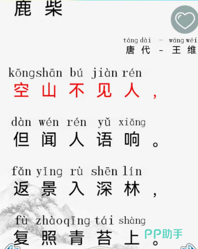 儿童古诗佩戴拼音,具有拼读,朗读,字幕滚动等多种功能,还有点评,翻译,首收录500多首唐诗宋词,根据年代作者等多种不同的内容进行分类,包含的类别比较齐全,比如田园生活、游子思乡等等。
