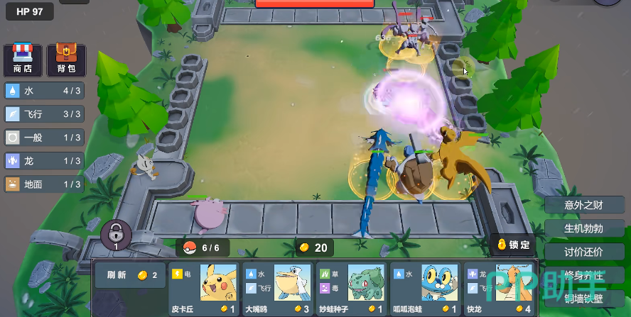游戏介绍:它的玩法颇具策略性,玩家可以从商店中通过刷新的方式来自由购置各种宝可梦,并且同种宝可梦还能反复购买进行升级,因此随着游戏的深入玩家的获得感会逐步攀升,加上它还有增加人数的机制,因此到后面还能欣赏到精彩的多精灵混战。
