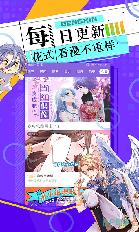 以上就是日更漫画app有哪些的推荐了,在这些漫画资源分享平台上基本上都有一些独家的漫画资源,有些漫画软件上还有漫画创作家入驻,确保平台用户能第一时间看到漫画内容的更新,部分软件上还提供漫画的周边内容。
