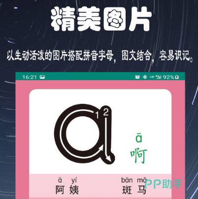 在这款软件当中有教学视频以及精美的图片和免流量下载,针对于小学以及零基础的成年人所打造。所有的拼音都有真人发音,学习拼音的同时了解,学习到准确的发音,对之后汉字学习有着很大的帮助和好处。