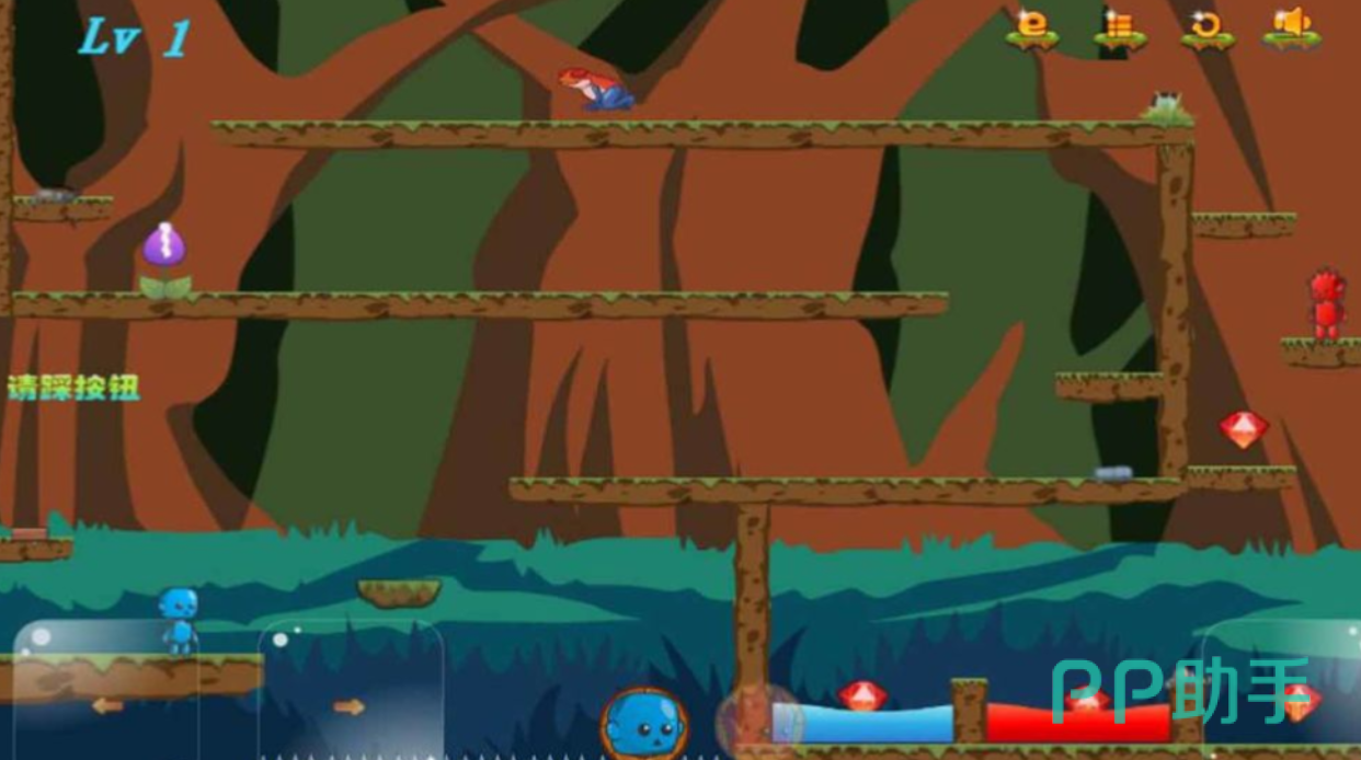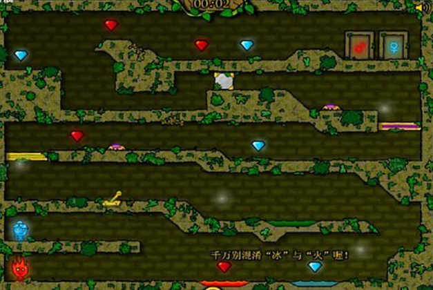 森林冰火人是款风靡全球的联机横版冒险类游戏,玩家需要帮助冰火人在森林地图中顺利闯关,冰火人需要互相配合收集宝石和钥匙,神秘的森林地图和精彩的闯关过程吸粉无数,简约的操作界面和卡通的画风让人耳目一新,魔性的角色形象搭配极快的游戏节奏吸粉无数,欢迎大家来到森林地图控制冰火人进行冒险。
