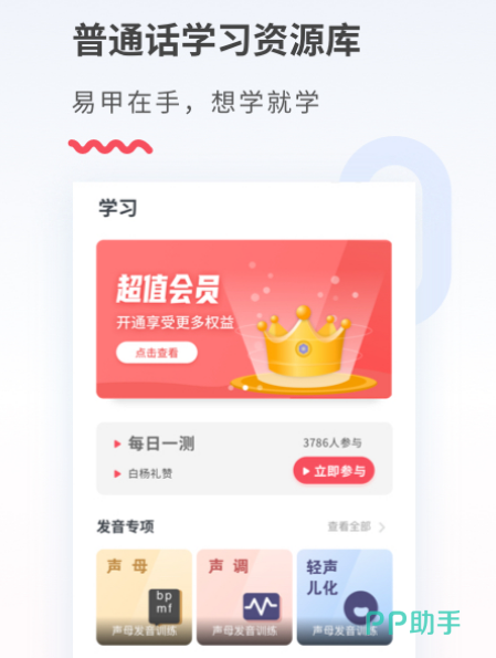 该软件已经帮助2,000万的用户来学习普通话,可快速的教你掌握标准普通话读音、发音和口语练习,并且还能进行多方面的学习,拥有非常先进的技术,通过多方位来为用户提供学习方案。