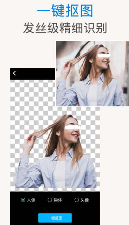该软件内对各种衣服、植物、奖章等的识别和抠图都做得很好,大家可以对所需物品快速抠出,编辑和合成也很方便。大家可以利用平台的自动抠图和智能AI技术,能够在几秒钟内完美识别并抠出人像。同时平台可以对证件照换底色,软件能够智能抠出人像,然后轻松换底色。