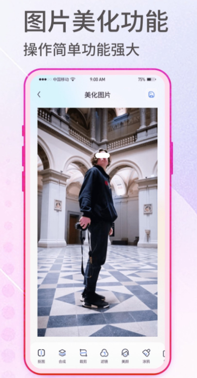 软件内大家可以对图片添加滤镜和贴纸,都可以进行细节调整和贴纸的添加。此外,您还可以自定义文字贴纸。大家可以通过软件内的拍照或本地图片,在软件中选择需要抠图的部分,即可快速完成抠图,抠图效果精细度高。同时软件可以将多张不同尺寸和比例的图片进行拼接。