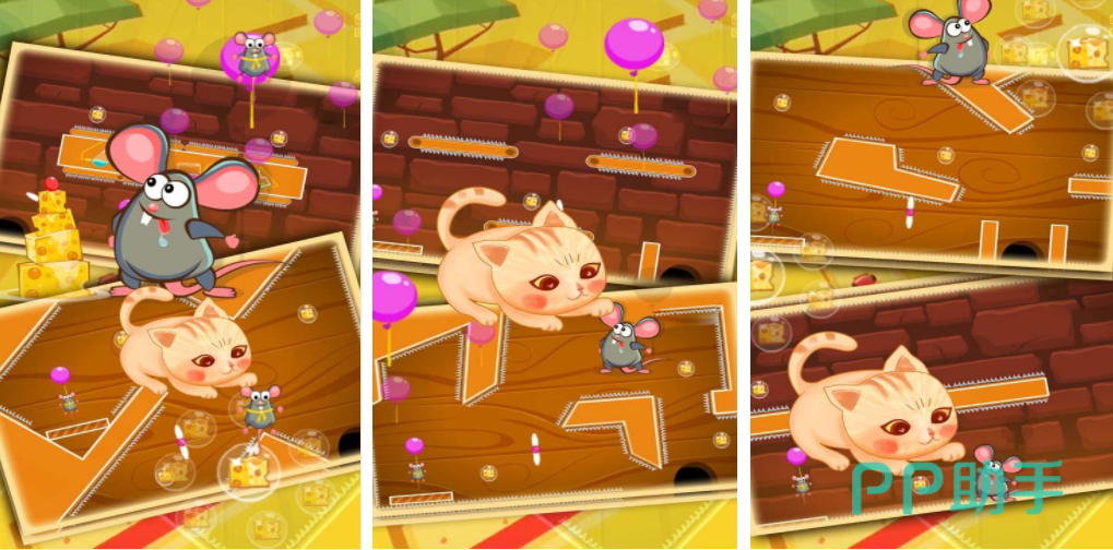 这是一个画风设定非常可爱的游戏,在游戏中玩家需要扮演小老鼠,为了能够顺利的通关,需要躲避螺旋桨,并且快速的找到奶酪的位置,把奶酪吃完之后还要安全的返回鼠洞,为了可以不让小猫抓到自己玩家需要在游戏中操控小老鼠不断的改变路线,如果想挑战猫的权威,那就可以加入到游戏中进行一场奶酪争夺战。