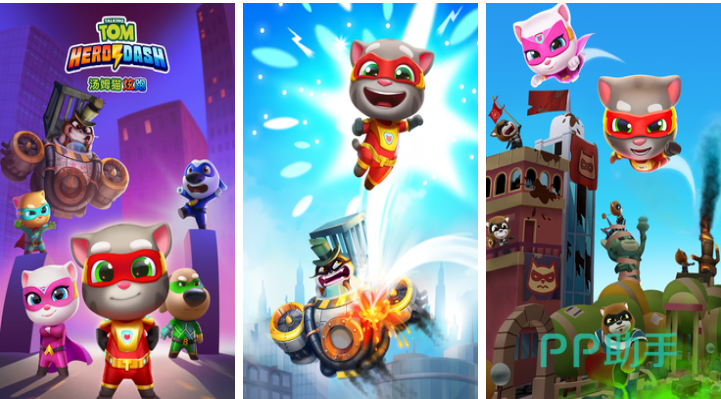 汤姆猫炫跑是款小动物题材的3D竖版单机跑酷类游戏,许多小动物将穿上紧身衣化身超能英雄进行跑酷,简单的操作和张力十足的画面让本作充满刺激性,你需要不断跨过各种障碍赚取大量的金币,以此解锁更多的小动物超级英雄。游戏画风唯美而且角色形象设计得非常可爱,精彩纷呈的跑酷过程让许多玩家肾上腺飙升。