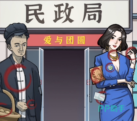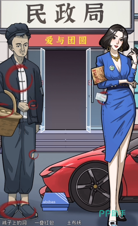 首先玩家们在进入关卡的时候,我们所处的场景是在民政局的门口,门口有两位成年人,这关的任务就是需要玩家们仔细分辨这两位,然后找出真正的有钱的父母是哪一位,之后本关便会真正开始。