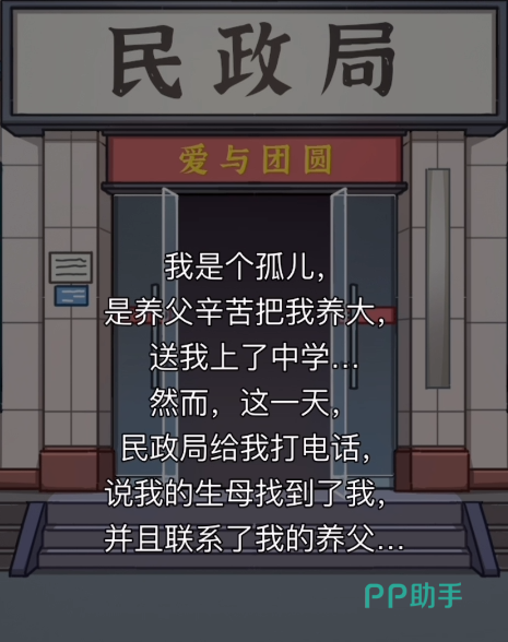 之后点击养父的布鞋,可以看到脚上穿的是一双旧的布鞋。之后兜里面也能看到红包是卖了老母鸡才有的。之后点击生母,生母是大学教授,本身家里现在又有钱,之后系统会让玩家选择跟哪一个走。