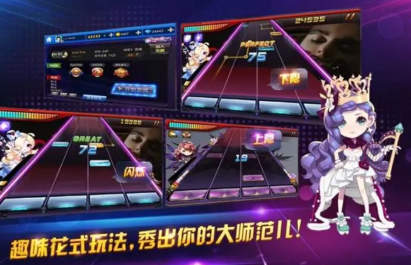 游戏特色:游戏中加入了非常完善并且有趣的好友对战环节,就连游戏特效都特别炫酷,采用了传统的音符玩法,并且还加入了更丝滑的操控体验,在玩家体验过程中只需要单击敲击滑动屏幕,就可以尽情的感受演奏之旅,现在游戏操作方式变得更加灵活了,而且加入了更新更全的歌曲类型,带给众多玩家们新奇的游戏体验,还可以开展世界对战,和全球各地的玩家去对决,比拼一下谁才是节奏大师。