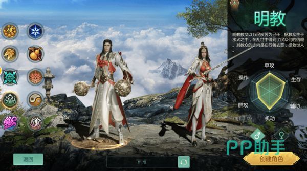 该门派主打的是法术攻击,最擅长的是群体输出,以及闪避上的优势了,它在游戏中又分为两大派系,分别是使用锤子的锤明教和使用剑的剑明教。锤明教在游戏中五行为木系,当战斗中遇到的敌人是土系的时候,就会将其得到一定程度的压制,它最擅长的是近战爆发,机动性还非常的强,不过它的可操作性会低一点,上限也会低一些,在游戏中生存能力超级强,可以作为大肉来抗伤害。