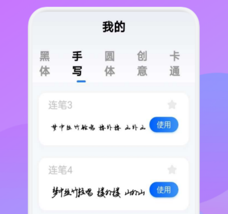 《个性字体》中拥有超过数百款精美的字体供用户挑选,无论是手写、卡通还是书法字体,都可以在这里找到。此外软件还提供精选文案和签名设计,供用户分享和使用。