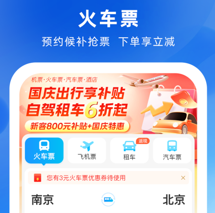 这款app提供了专业的高铁票、机票、酒店预订服务,支持查询列车时刻表、票价等,让用户能够快速比价,选择最优的出行方案。