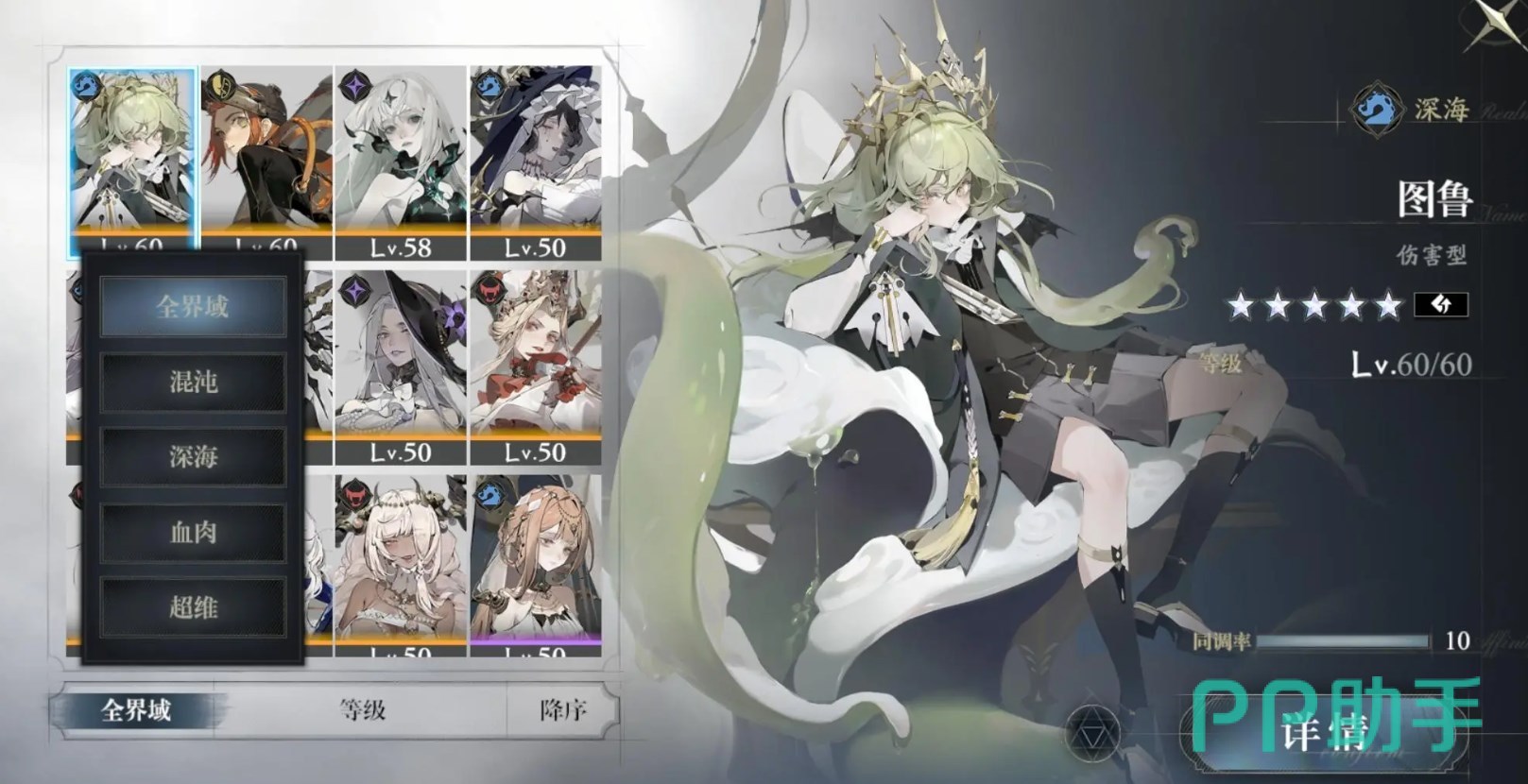 游戏的角色设计颇具亮点,带有一点黑童话元素,主体给人的感觉也是偏向于昏暗的,有一些比较高级或者说对小白来说晦涩难懂的设定,像是界域、混沌、超维等等。美术方面每个阵营的风格也都比较统一,特点鲜明。