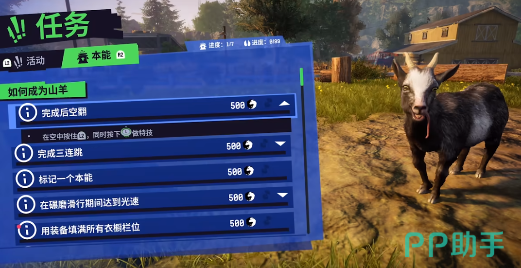 模拟山羊3是一款让你体验山羊生活的沙盒游戏,你可以在这个游戏中扮演各种各样的山羊,而小编今天给大家带来的就是模拟山羊3所有山羊解锁方法,从普通的黄山羊到神秘的后山羊,每一种山羊都有自己独特的能力和外观,让你在开放的世界中享受无尽的乐趣。你可以用你的舌头粘住任何东西,然后把它们扔到空中或者撞到其他物体上,造成各种混乱和破坏。