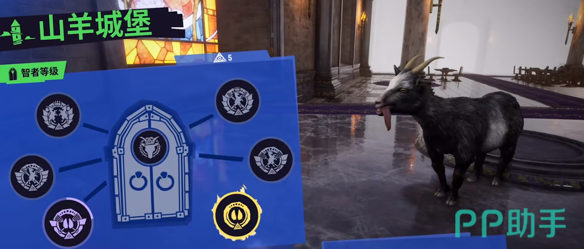 后山羊,这是一种可以召唤大量小山羊来帮助自己的强大山羊。玩家需要在出生点旁边找到一座像塔楼一样的建筑物,从建筑物最上面的洞口进去。然后来到一个神奇的殿堂,跳到王座上,等待被弹出来,就可以解锁后山羊了。空气山羊,能够飞行并通过吹气球来攻击敌人的山羊,它的外观是白色的毛皮,可以吹出气球,气球会在碰到物体时爆炸并且会把周围的东西都吹走。要想解锁空气山羊,需要在游戏中收集所有的气球,气球可以通过打破气球机、打开礼物盒、收集隐藏在游戏中各个地方的气球获得。
