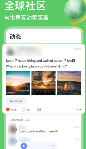 一款让我们与全世界用户亲密接触的聊天社区工具,这里不仅是可以直接匹配到一些适用语种的小伙伴,更是可以选择地区或语种查看对应的用户动态。