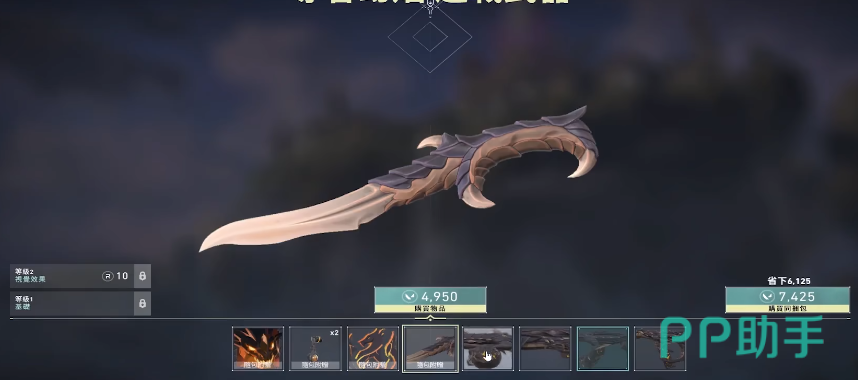 尊者幻焰【匕首】这是一把短刀,这款皮肤也是目前游戏中比较出色的一款了,可能是匕首的皮肤比较少,周身是由龙爪的形状进行设计的,目前商城售价是87.5元人民币;