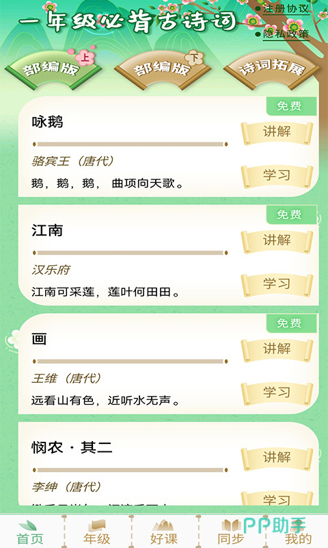 诗词大全这款软件是一款可以让孩子学习诗词,而且能够提供诗词根读服务的App软件,在这款软件上大家能够根据自已孩子的年纪以及所学习的程度来选择适合他的诗词,同时设定不同的朗读速度和重复的次数,能够让孩子在更多的过程中更好地了解诗词的韵味以及加深对于诗词内容的记忆,让孩子更好地记住诗词中的关键内容。