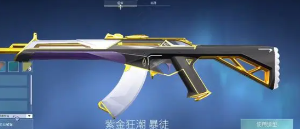 第二个皮肤叫做狂徒:紫金狂潮,这个皮肤的外形比较酷,采用了黑、金、白三种颜色,有种低调奢华的味道。这个皮肤适合的枪械是狂徒,狂徒的伤害是很高的,所以也是一个出场率比较高的皮肤。
