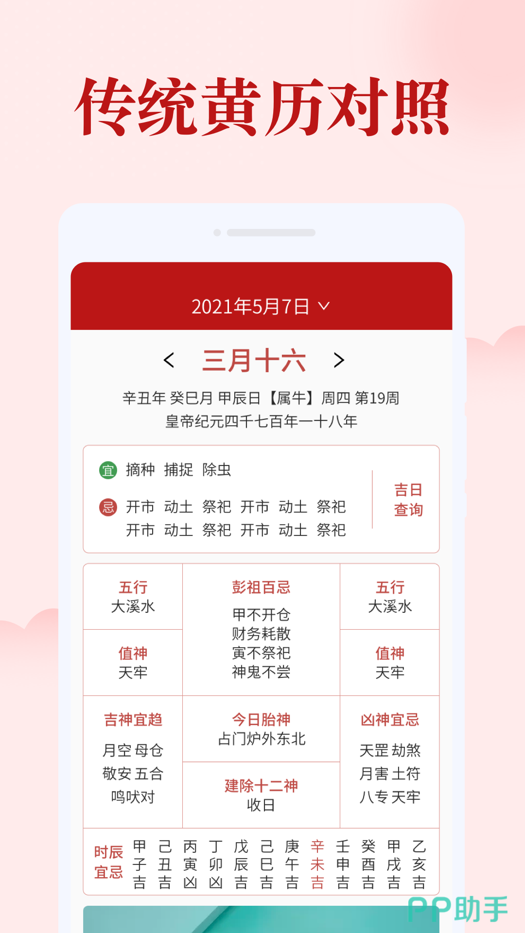 除了记录日期,这款软件还记录了中华传统文化知识、日常生活辅助工具,集合娱乐休闲、记事等多功能于一体,精准展示每天的天气、温度、湿度等,提前标注重要日子。