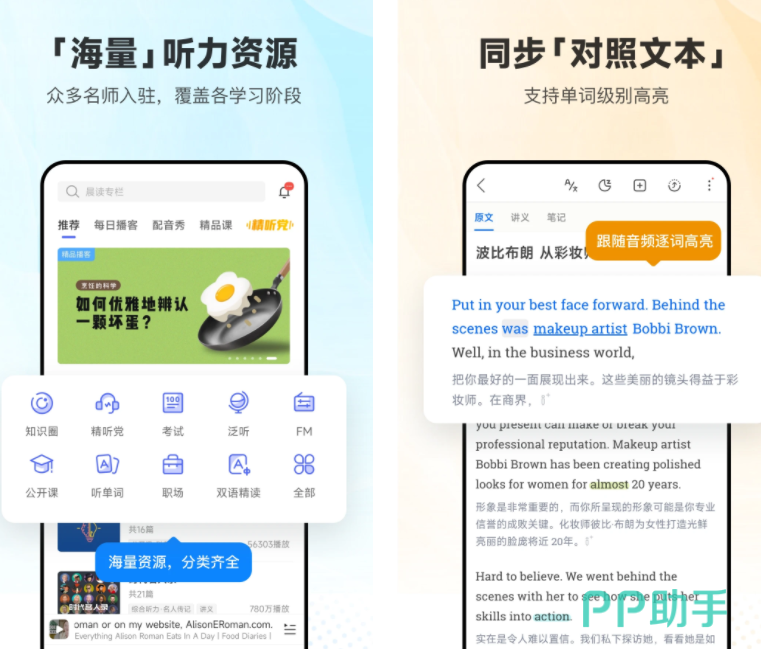 软件内有海量听力资源,众多英语名师入驻,覆盖里不同的英语学习阶段。英语听力有对照的双语文本,一边听一边看字幕,重点单词还会有特别高亮,让你记忆更清晰。