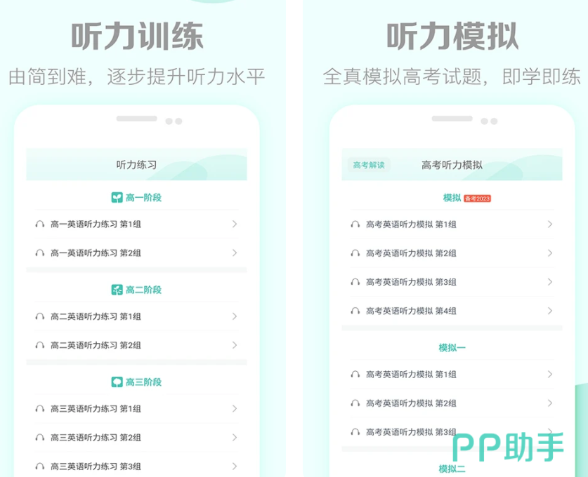 软件有从简到难,逐步提升英语听力水平的训练。收录历届的高考真题,有考场原始的英语录音播音,让你身临其境地练习听力。