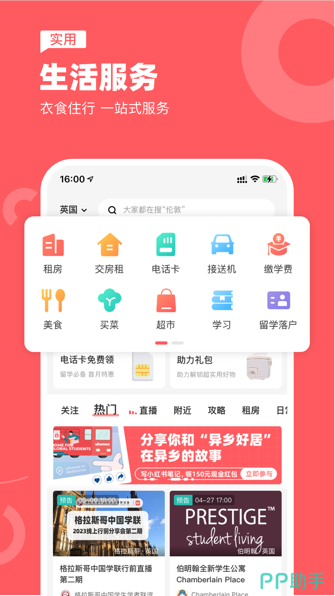 在这款留学生的专属APP当中,各种各样的经典留学生资讯以及相关的留学资讯都可以在这里找到,大家不仅在平台上可以找到相关的房源信息,还可以查看其他留学生的在线分享。一是出行,一站式的生活服务,让大家独在异乡也可以感受到家一般的温暖。