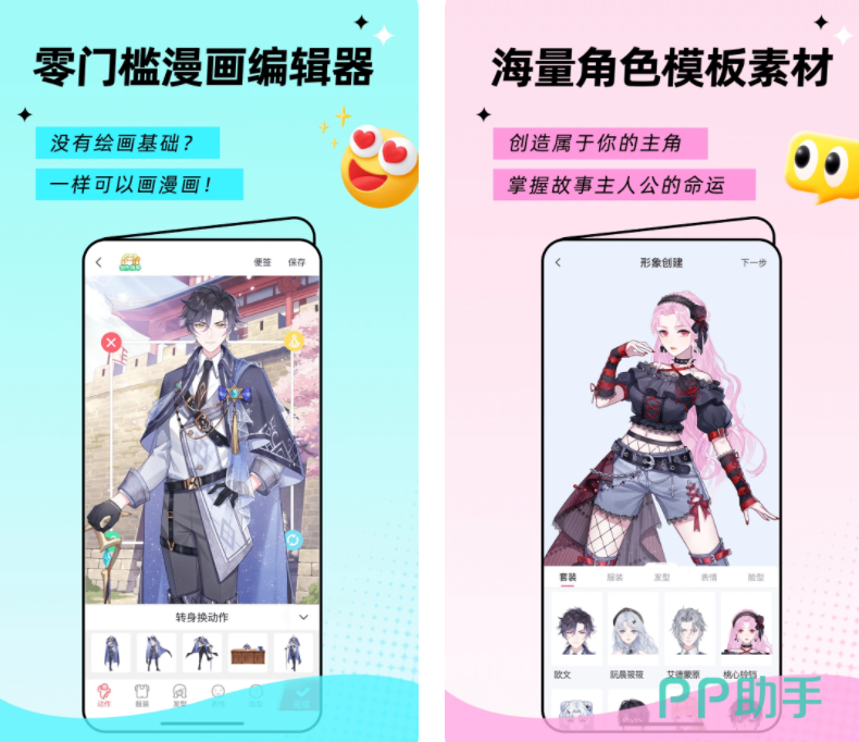 软件有漫画与漫剧两大分区,分类有古风言情、科幻悬疑、修仙修真等。有海量漫画角色、精美背景资源,零门槛编辑漫画,快来下载软件看原创漫画、亲自做漫画吧。