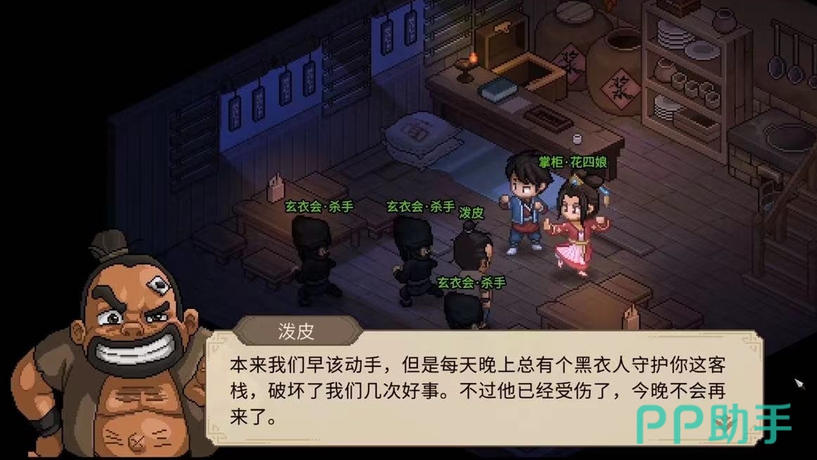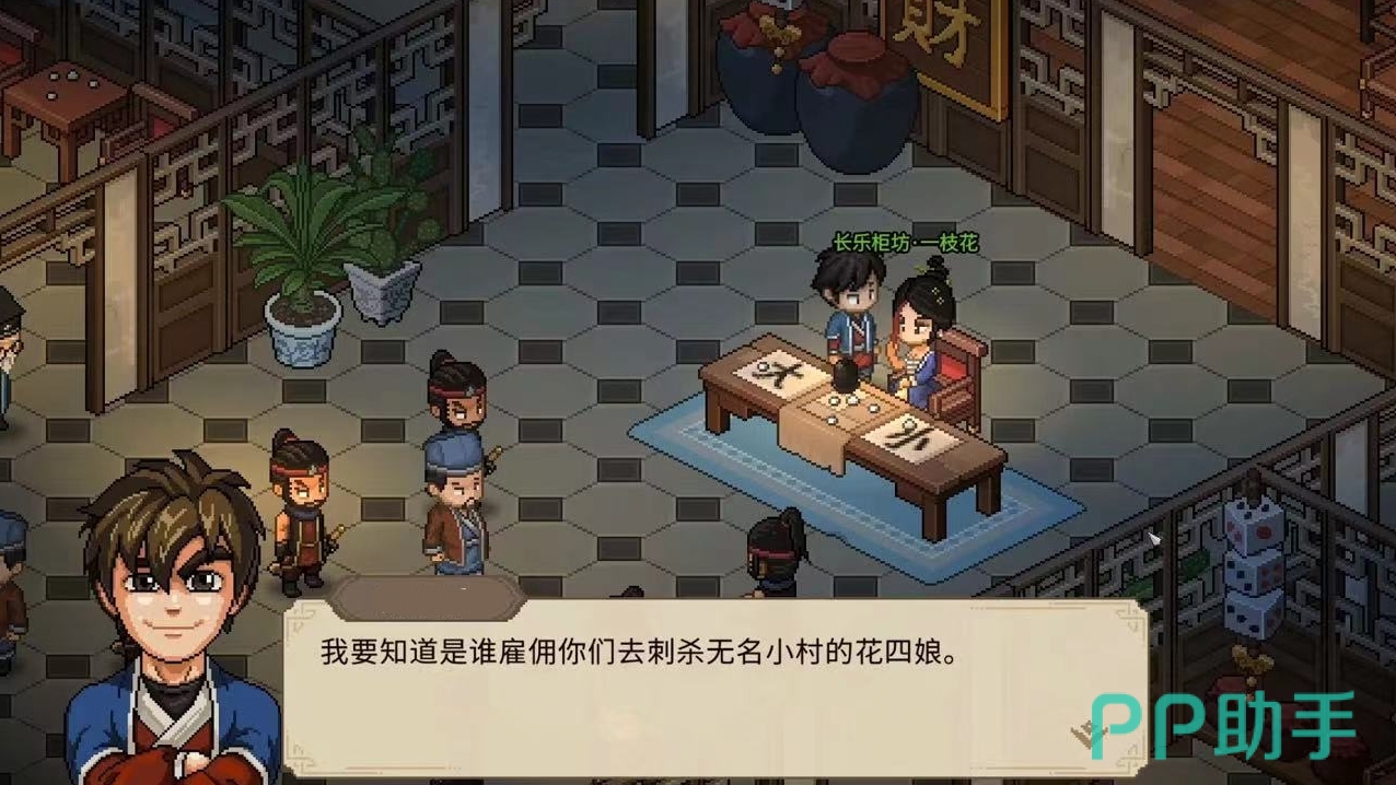 交完10两银子后,玩家就能从店小二口中得知大梁城内的长乐柜坊便是玄衣会的总舵,玩家可与花四娘一起前往那里继续完成剩下的剧情。但要注意接下来会与玄衣会众人战斗,所以玩家最好将状态补好,并准备好补给品后再去开启任务,不然很容易就会失败。