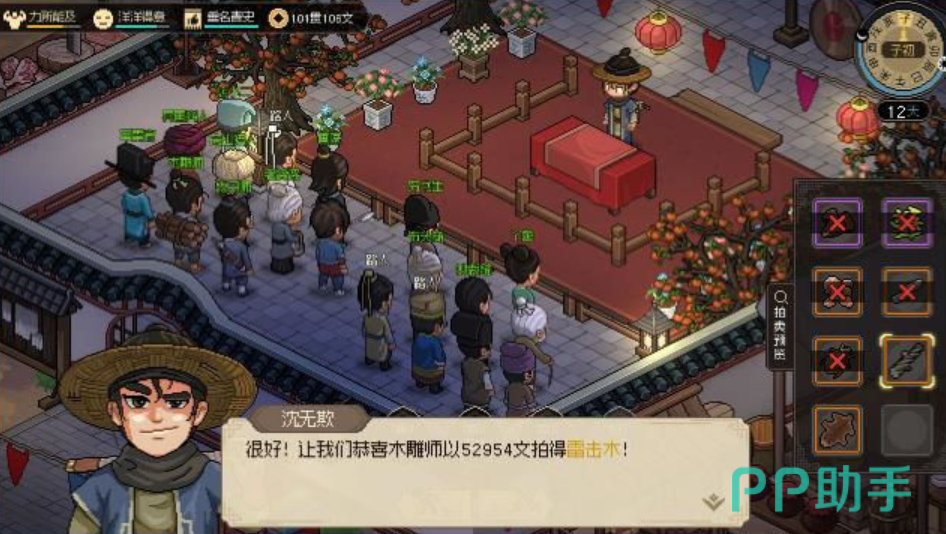 触发珠光宝气楼是由前置条件的:玩家的身上至少有10贯钱,否则无法进入珠光宝气楼、名声至少为3级,否则无法参与拍卖会、开门时间则是在子时至丑时之间,而且注意队伍中的成员还不能有男性。当我们队伍中有珠光宝气楼敌对角色的时候,老板石万三会警告我们离开。当我们满足这些条件之后。就能顺利触发拍卖会了。