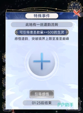 其实准圣只要大家不停的挂机就可以完成,不过在在准圣上巅峰之前大家是需要完成一定的前提条件,那就是需要大家的星球这个时候是可以刷出来随机事件才可以,大家要是在上面刷出来随机事件的话,只要出现的事件是道韵就有很大的机会可以达到准圣巅峰。