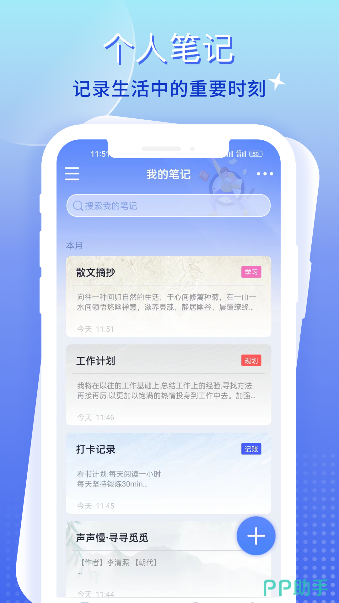 有的这款笔记组和APP用户就能够轻松的拥有自己的专属笔记内容,轻松记录在线查找多本不同笔记都可以存在一端用户登录账号就可以随时下载这些笔记笔记内容丰富,而且可以实现签收的储存,查看和分享。去看APP能够让手机瞬间化身成为便利贴。