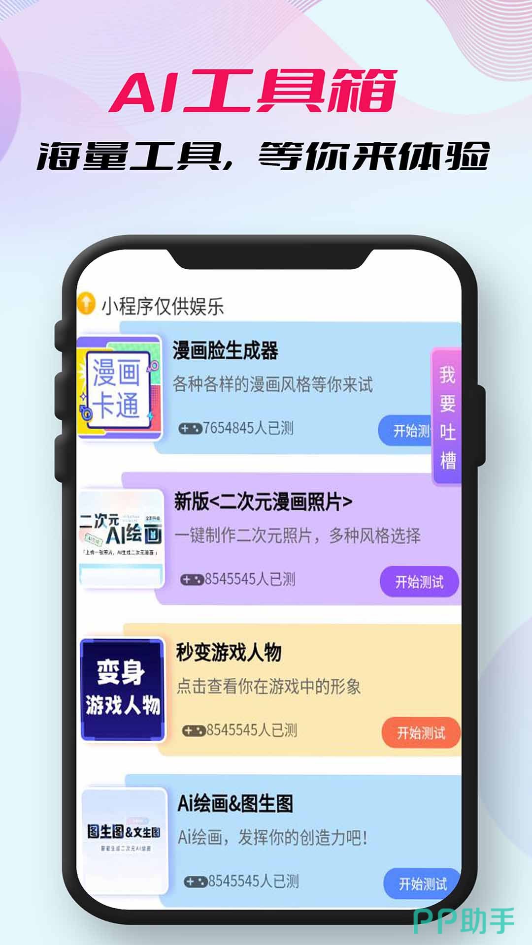 AI人工智能功能上线,该软件编辑功能更加强大,趣味性十足,直接生成视频、绘画、头像、生日祝福、网名、图片、表情包等,超便利工具箱一键启用。
