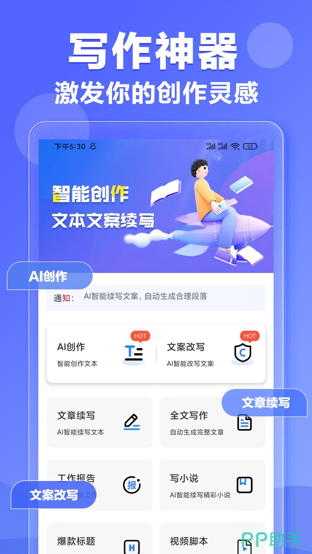 这款软件是一款能够帮助我们书写各种文字总结的APP软件,在这款软件上我们能够获得更多的创意灵感,可以让智能的机器人帮助我们优化我们书写的内容。在这里我们可以收到比较专业化的支持和创作建议,这样大家根据建议的书写可以更加高效的完成内容的生成,并且在这款软件上大家能够将自己创作好的内容,更好地复制或分享。