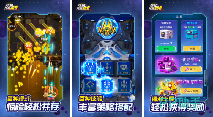 本作是款具有多种模式的竖屏战斗机题材游戏,射击与割草元素的完美结合让这款空战游戏名声大噪,独创的自选技能系统能大幅提升玩家的战斗力,简单的操作系统和良心的福利让本作名声大噪,震撼的音效以及爆炸火光给人一种身临其境的感觉,几十种科幻感十足的小飞机等你驾驶,细腻的画风和完美的特效制作让人欲罢不能。