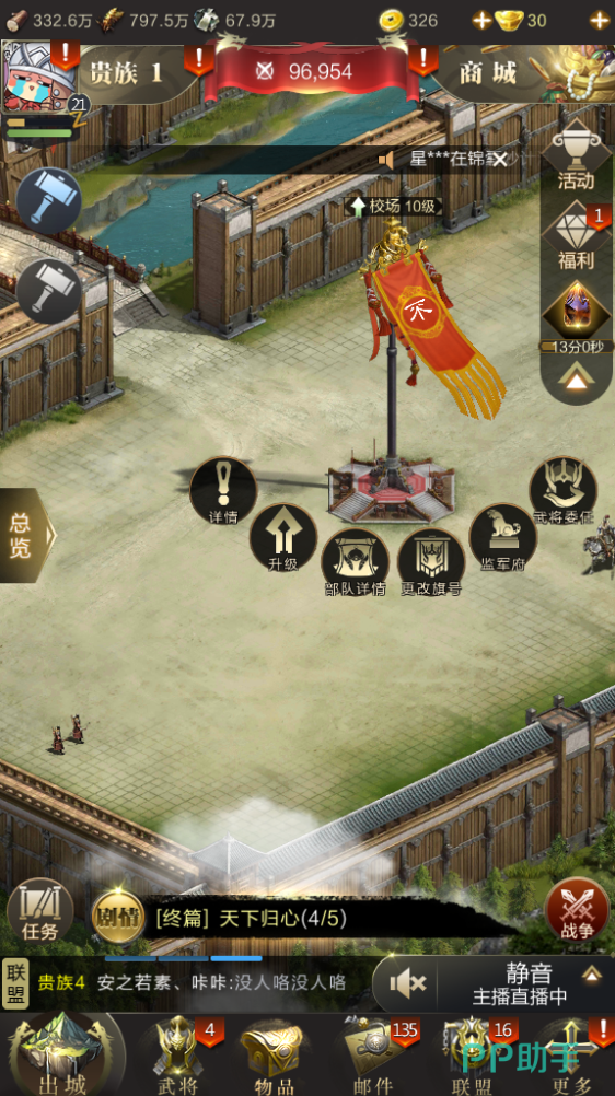 当我们满足要求之后,直接点击城墙外面的校场,点击部队详情,在部队详情页面我们可以看到我们的部队的详细情况,包括等级,属性,数量等等,选择自己需要晋升的士兵,点击晋升即可。