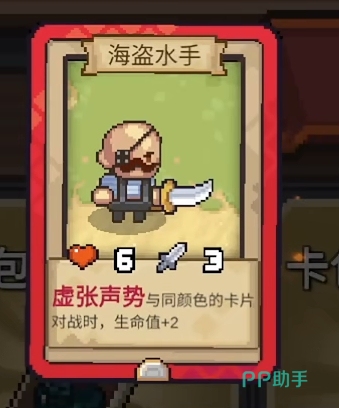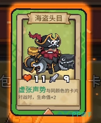 该技能可以让海盗头目与同颜色卡片对战时额外增加两滴血,所以它在打高质量对局时会很有优势,毕竟同为橙卡,对手血量肯定也很高,而海盗头目有了这额外的两滴血,就能比它有更多的容错!