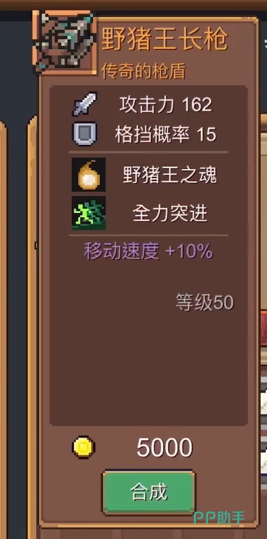 野猪王长枪:这个装备非常适合那些带位移的近战职业,首先它162的攻击和15的格挡就同时满足了一个近战在攻防两端的全部需求,其次它的两项技能也很契合近战,“野猪王之魂”能提供伤害,攻速和移速的全面提升,然后“全力突进”的效果是只要你发动了一次位移,那么也会获得伤害,攻速和移速的提升,并且它给予的提升数值和野猪王之魂几乎一致,所以相当于角色的实力直接全方位突飞猛进!