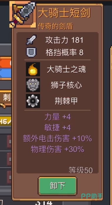 另外它自带的技能也都是比前面几个要多的,其中大骑士之魂可以让你的攻击偶尔造成重击从而打巨额伤害,狮子核心则同时提供伤害与防御侧的加成,荆棘甲还能给敌人反伤,实战中的近战输出表现因此大大提升!