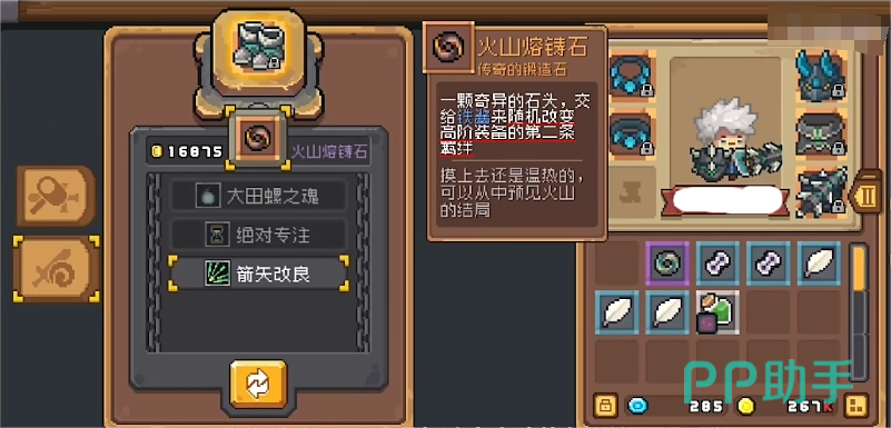 目前游戏内的火山熔铸石主要是作为一种装备锻造材料来进行使用,它本身的品质高达传奇级别,所以在获取的时候难度也会比一般的锻造石更大,不过使用起来还算是比较简单的,只要前往秋梨村找到铁酱,之后选择有羁绊的装备进行锻造即可。