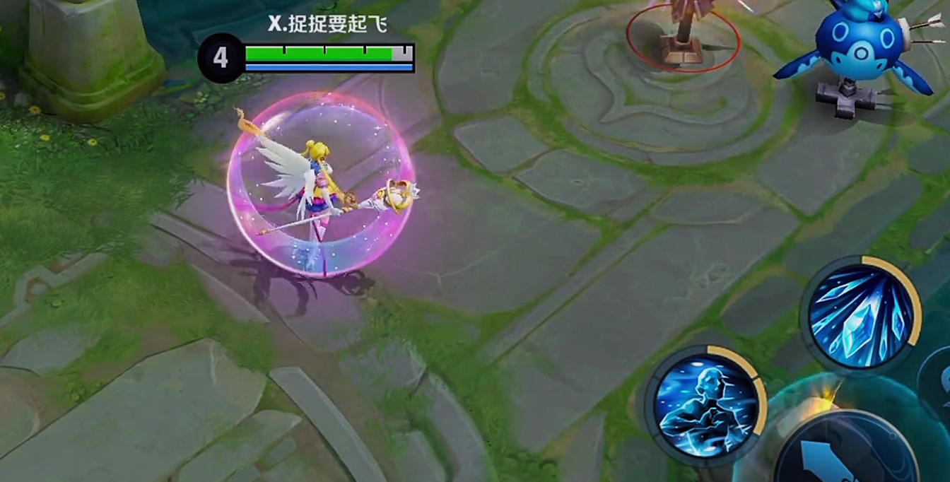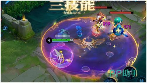 一技能永红水冰月量释放特效非常的足,大家可以看到动画结束后,在地上会有一个翅膀的标志,而且王昭君身上的护盾也会变成炫彩色;
