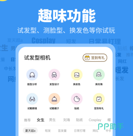 各种各样好看的发型供用户选择,可在线换不同风格的发型,并且还有测试脸型以及发型模拟等功能,只需要一张照片就可帮你进行测试不同颜色的风格,测试颜值。对于存在的问题也可进行咨询,甚至还有一些关于如何打理的技巧或者是编发的教程,如果想要学习这方面也可选择这款软件。