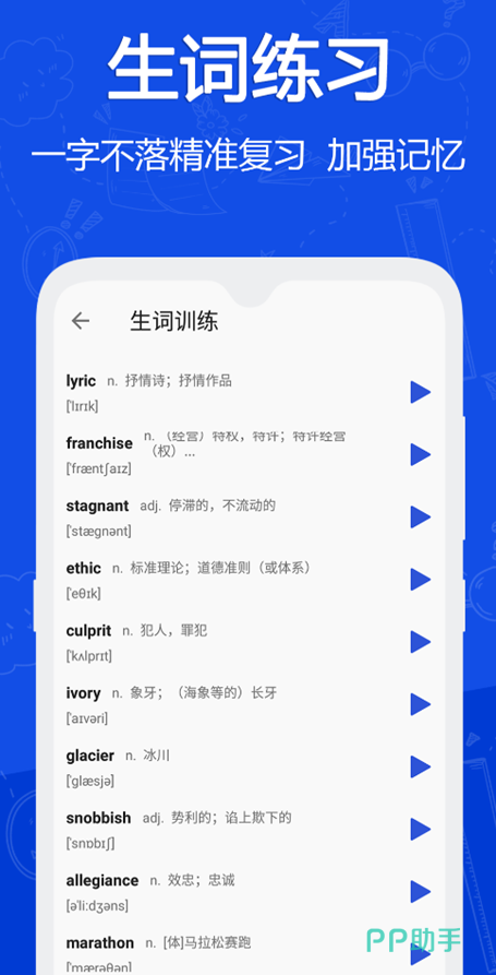 除了海量的英语理论知识之外,这款软件还加入了更多实战的题目,通过不断做题加深对单词的记忆和理解,从而帮助我们进行牢记。