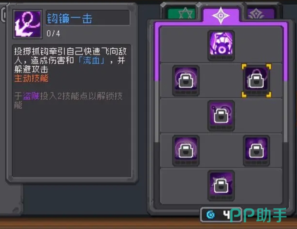 第三个“钩镰一击”则是一个位移技能,能通过投掷抓钩来快速接近敌人,同时该技能也有伤害和流血,能和刺客技能组形成一定联动,再加上它还有躲避攻击的效果,所以算是间接加强了忍者的生存能力。
