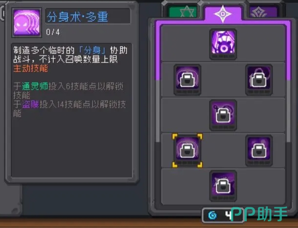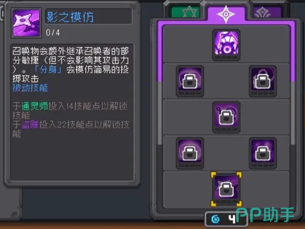 最后的这个“影子模仿”也是非常厉害的技能,它可以直接让你的召唤物继承本体的部分敏捷,这个敏捷虽然无法像对玩家那样给它们带来攻击力加成,但却可以给予闪避,暴击和命中方面的加持,而且这招还能让分身模仿本体的一些简易投掷攻击,因此也算是对分身的全面加强了!