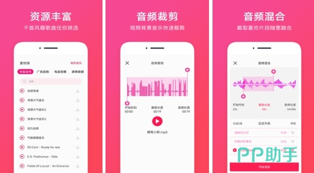 这个软件上的剪辑不仅能够进行简单的音频剪辑,也能进行视频的剪辑。如果你想创作完成一个视频内容,这个软件上的功能你都用的上,不会剪辑音频可以直接选择平台上的曲库。